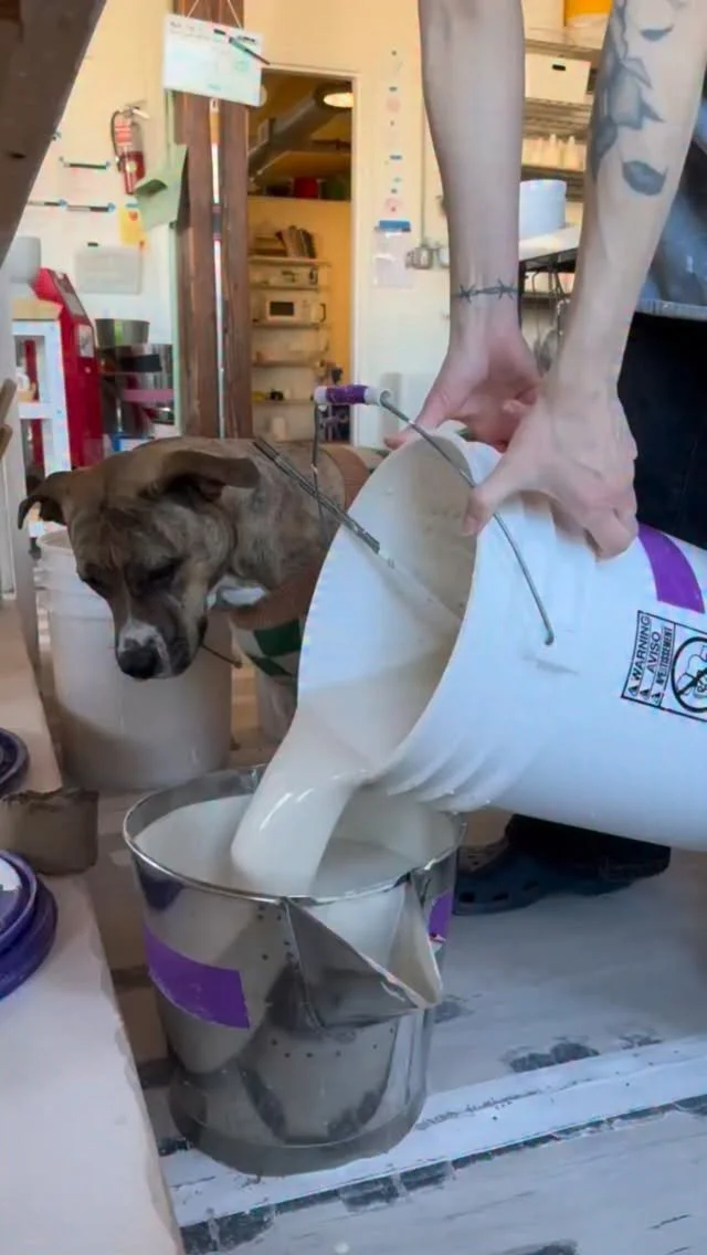 After cleaning and preparing the molds, we mix the liquid clay to the right consistency, known as slip. Then we pour the slip into the molds, each with its specific cast time, to vary the product's thickness across different designs.